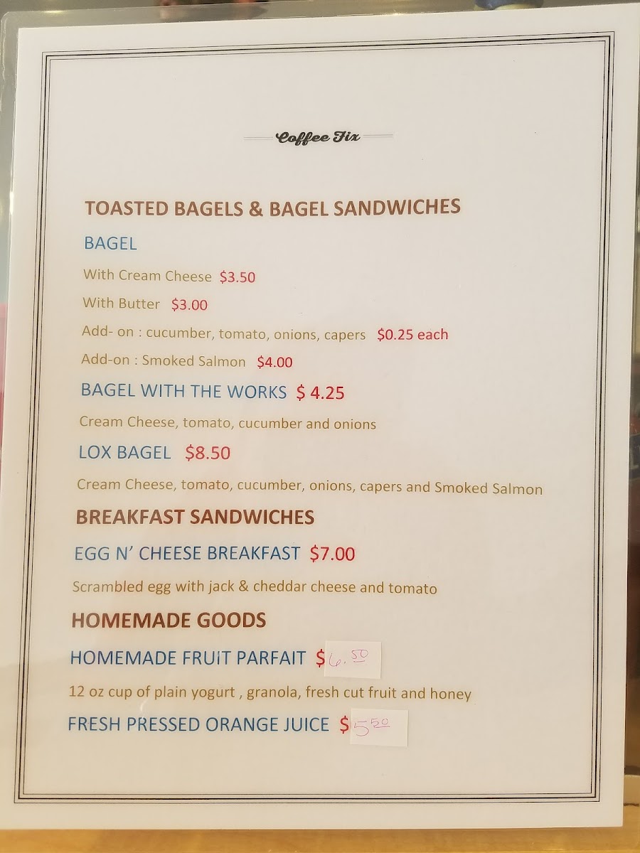 When it comes to coffee, Coffee Fix pours up a variety of enticing options. Their Ethiopia Drip Coffee offers a unique profile for just $3.25, alongside the classic House Blend and Cafe Au Lait. And don’t overlook their comforting hot chocolate, priced at $3.00.